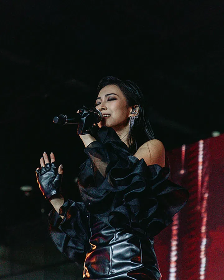 “其实这次找Terence合作,就是‘冲着他去的’,哈哈!因为我很喜欢我的《女友》封面造型(2022年5月),就想将那个造型从平面延续到舞台上。从一开始我就给了他十足的‘控制权’,也说尺度方面只要是出得了街我都ok,嘻嘻!我对Terence很有信心,每次去fitting(试穿)都是满满期待值。也真的,每个他准备的造型我都超喜欢,甚至还得‘割舍’一些无法穿的looks。当决定好演唱会流程后我就立即让他知道,他就根据个别segment设计造型。基本上第一次fitting就已把各部分的造型大致锁定,完全符合我想要的。我想,这就是我们之间的一种默契吧!”
