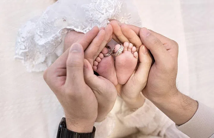 宝宝写真中,夫妻俩大手小手护住孩子的小脚丫,婚戒则套在宝宝的脚趾头上,满屏被爱包围的幸福感!胡佳琪是在去年10月底公开订婚和怀孕的喜讯,并于12月27日和老公注册结婚,组成幸福小家庭。老公当初打动她的原因之一是他个性踏实沉稳,虽然不会制造浪漫花俏的惊喜,但日常生活中对她点点滴滴的关心与照顾,让她相信他是值得付托终生的人。
