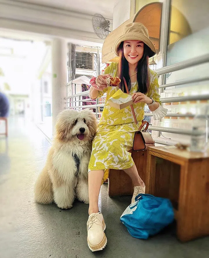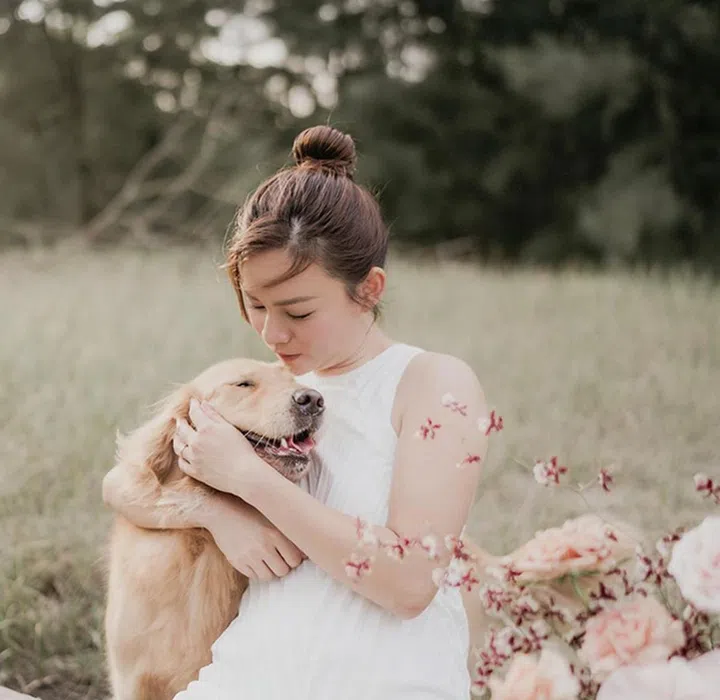 个性温顺敦厚的黄金猎犬,在狗狗界向来人气高,赢得许多爱狗人的欢心,本地女星凯丽也是一员。她的黄金猎犬Ethel今年5岁大,温暖灿烂又带点傻傻的笑容,让人忘记一整天的疲惫。她也非常疼爱这只毛小孩,不时分享和爱犬的温馨合照,结婚照也有Ethel的踪影,足见爱犬在她心中的地位。