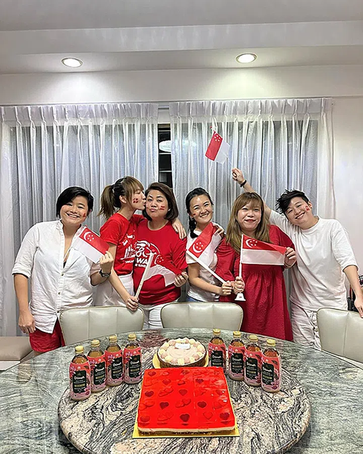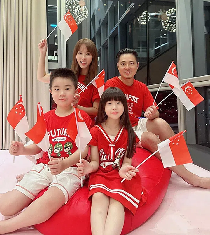 即便是远在台湾的林湘萍一家,也换上红衣为新加坡庆生。林湘萍发文说,孩子俩都很喜欢唱各个国庆节主题曲。今年虽然无法到现场观看典礼,在家也要拉满氛围感。她特别分享了几段一家四口挥舞着国旗,跟唱《Shine You Light》的视频,好可爱好窝心~