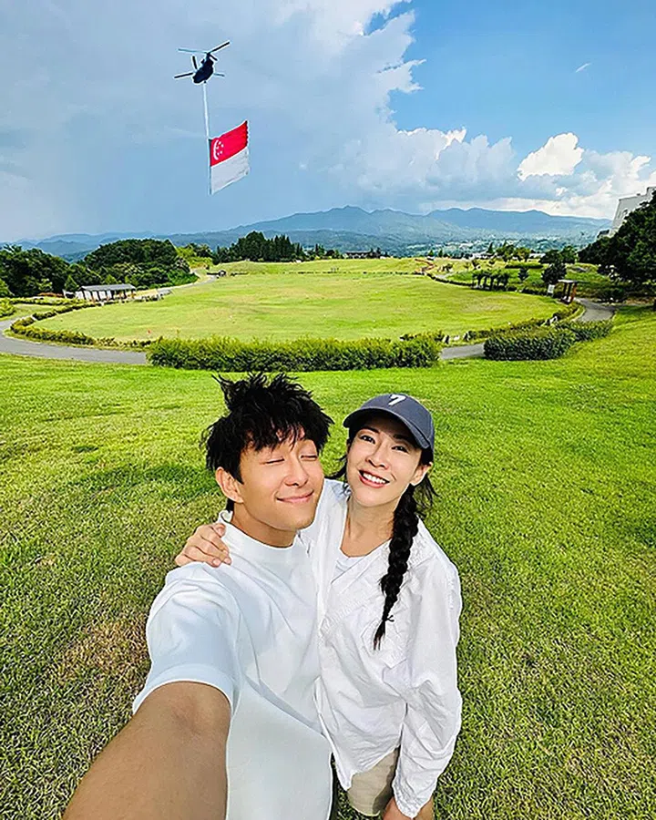 8月9日除了是新加坡的生日,也是刘子绚和田铭耀的ROM纪念日。刘子绚在IG上分享一张与老公在宽阔草地上,和挂有新加坡国旗的直升机合照,甜蜜欢庆这个特殊的日子~
