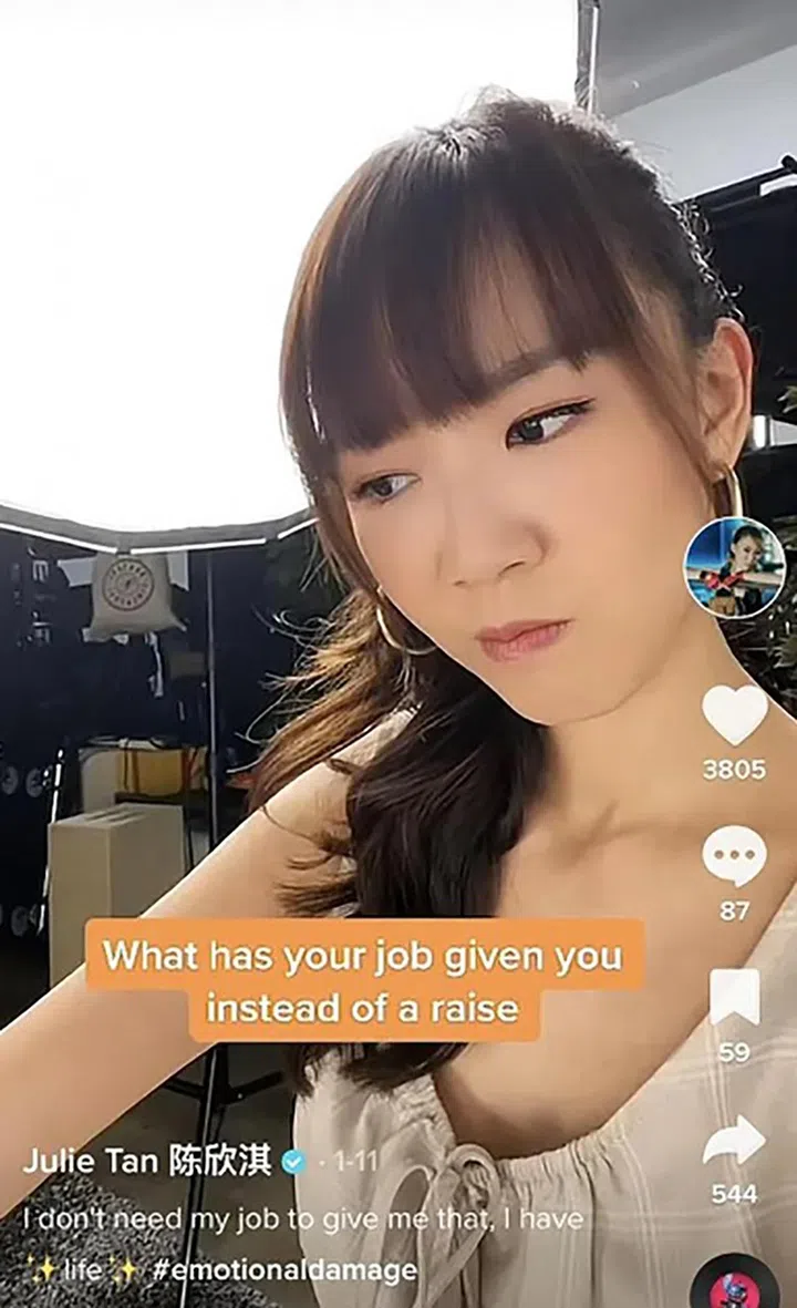 陈欣淇在视频中回答一道问题:“你的工作除了给你加薪,还给了你什么?”她的答案是“心理创伤”,并留言:“我不希望工作给我这个(心理创伤),我有自己的人生。”有网民打趣留言说:“工作给了更多工作。”陈欣淇回复对方:“若有更多工作,我不会埋怨。”此外,她不时在平台上分享旅游时的美景,也不介意用滤镜丑化自己。