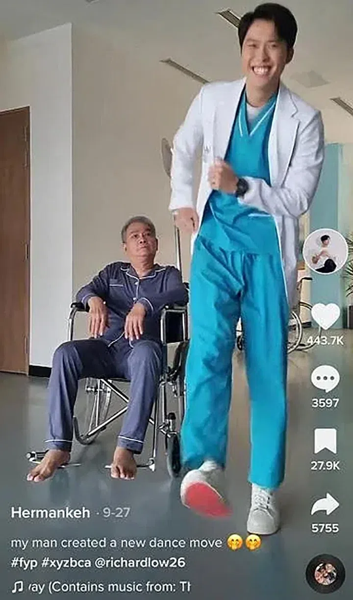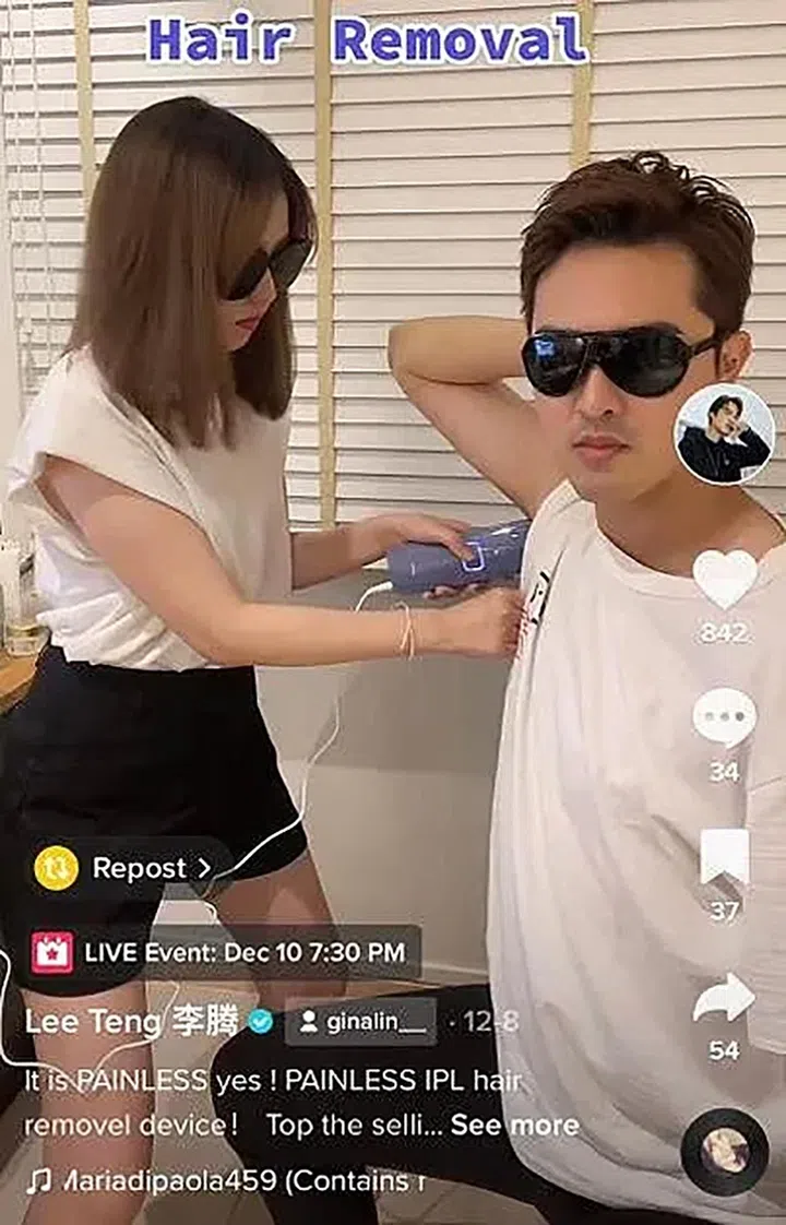李腾的TikTok粉丝有2万5000人,2022年晒出40多个视频,最多人看的是爱妻Gina用IPL仪器为他去除腋下毛的搞怪视频,吸引13万4000观看次数。