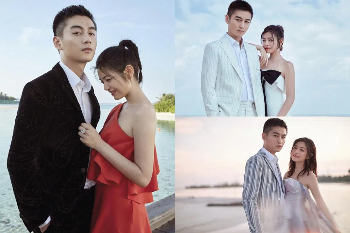 两人的夫妻写真是特地到马尔代夫进行拍摄的,场景里自然少不了唯美的大海及沙滩、阳光。陈妍希一袭仿佛墨染的抹胸连衣裙,搭配随意散落的中短发,浪漫又甜美。陈晓以一身条纹外套相配,一头清爽的短发格外减龄,搭配陈妍希的娃娃脸,看上去去就像率性私奔去的小情侣。