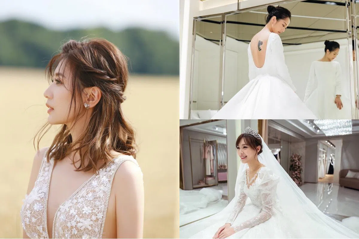婚礼上的她身穿简约式婚纱,U型露背展现纹身,与她自身的甜美产生冲突的美感,让人忍不住想多看几眼。这件婚纱看似简单,实际却花了5个月以8000朵立体花卉点缀裙摆,因此也不失隆重感,十分符合她的气质。此外,值得一提的是当天的婚礼发型,是由身为发型师的老公亲手弄的哦!再者,现场拍照所用的森林主景背板,是简嫚书亲自绘制的,特别用心哦!