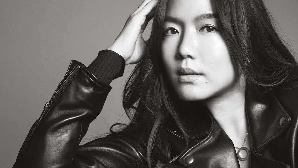 Yuni Ahn for Shanghai Tang 羊绒外套、羊绒长裤、人造丝上衣,Jimmy Choo漆皮短靴,Cartier LOVE镶钻白金戒指