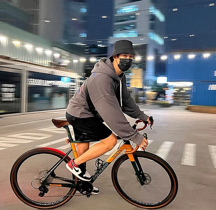 外号秀man的他,私下兴趣爱好也非常“直男”,喜欢骑脚踏车,享受自由兜风的乐趣,最爱沿着首尔汉江的骑车路线(想在首尔遇到欧巴,下次大家知道该去哪儿碰运气了吧?!)早前还开心地秀出新入手的“战车”——全球限量70辆的Colnago x Tod’s脚踏车!