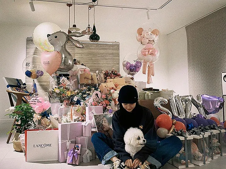 女团miss A出身的“国民初恋”秀智,今年在《安娜》中的演出受到不少好评,演技大跃进。生日落在10月10日的她,去年28岁生日也收到粉丝的各种礼物, 她和爱犬一起入镜,拍摄礼物认证照,感谢粉丝的厚爱,留言表示:“感谢所有祝我生日快乐的Sueweeties(粉丝昵称),要更努力拍摄才行。”