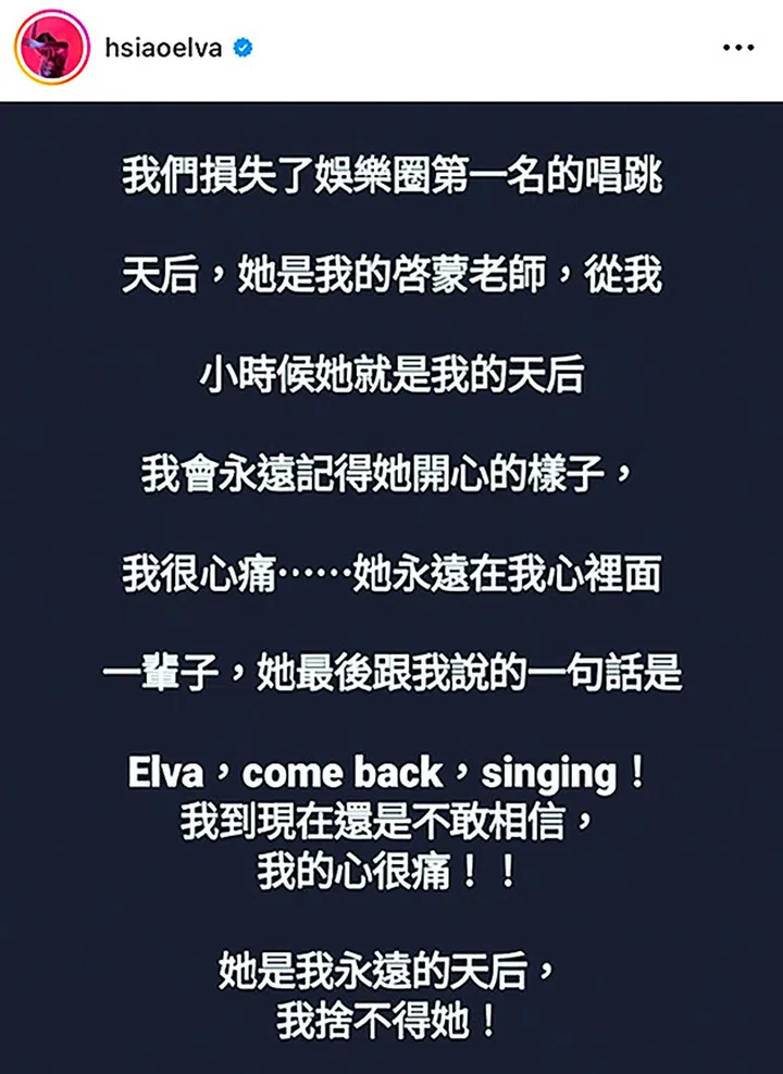 舒淇今早在IG上发文,希望李玟能一路走好,愿天堂没有痛苦。身为同时期出道的艺人,相信舒淇也一定了解李玟一路走来的不易。