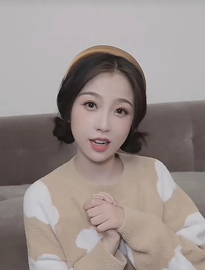 古灵精怪的虞书欣以修饰脸型的低丸子头亮相录制视频,与粉丝们闲聊。她选择用与上衣颜色相同的驼色系发箍来做搭配,居家感十足!