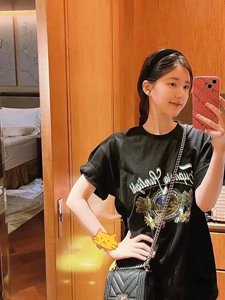 相比赵露思的黑绒发箍,Aespa成员Giselle的黑色皮面的发箍明显酷炫了不少。但搭配她的全黑穿搭和黑色猫眼眼线,似乎有带来了一丝丝温柔。