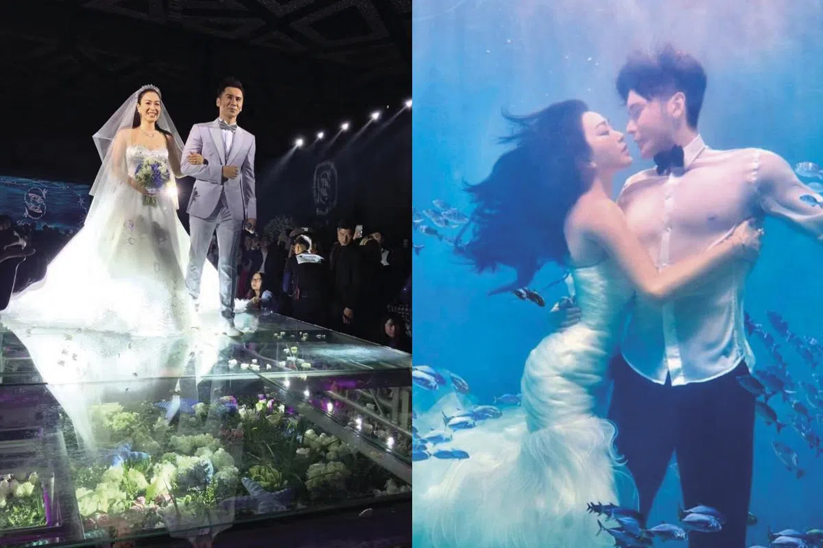 延续了两人婚宴邀请函的画风,婚礼当天的现场布置,是以海底世界为主的。网友们更因此称钟丽缇和张伦硕为“人鱼夫妇”!无论如何,单看这排场,灯光与布景交织出一片朦胧蓝海即视感,就足够壮观,并震撼人心了。