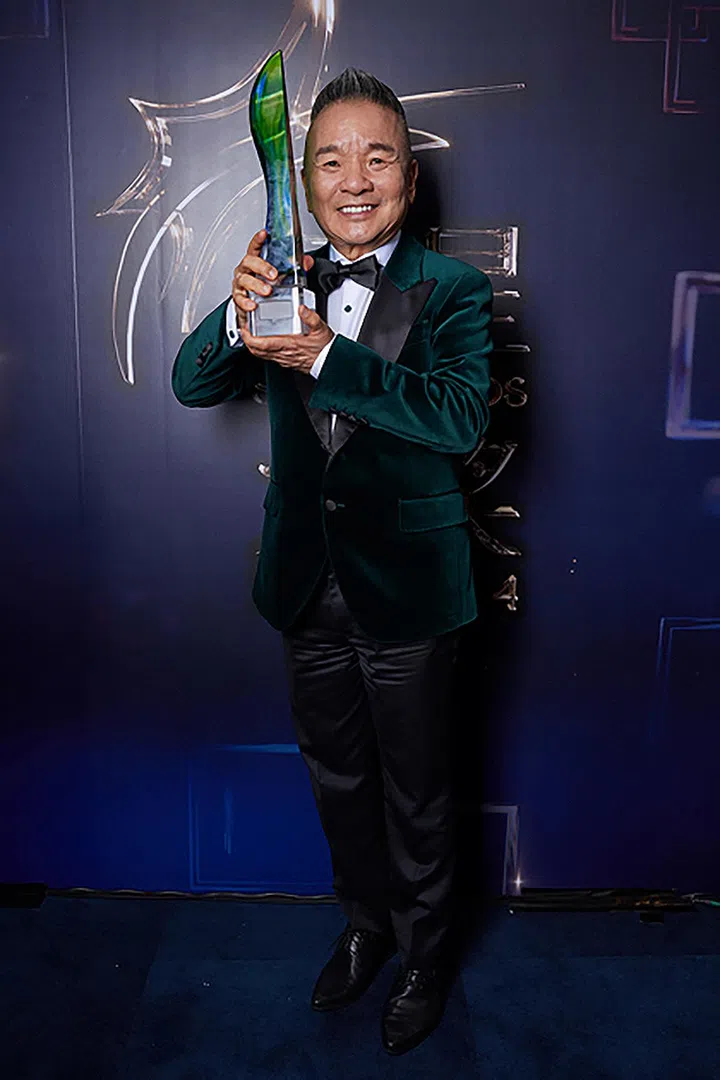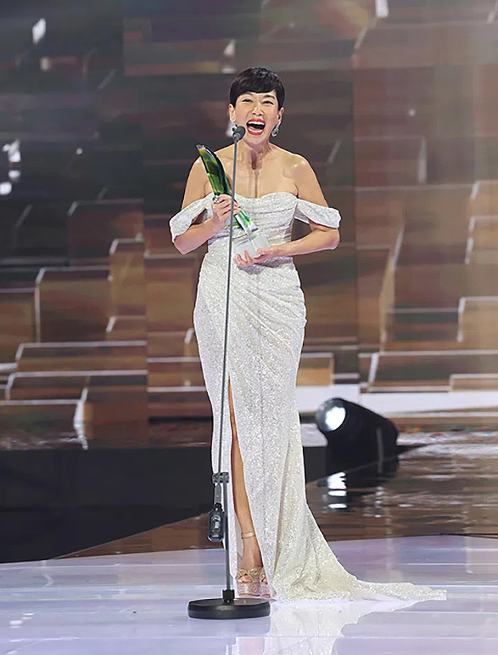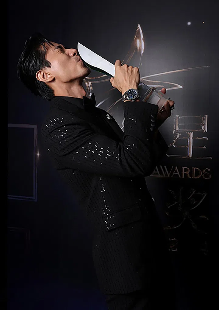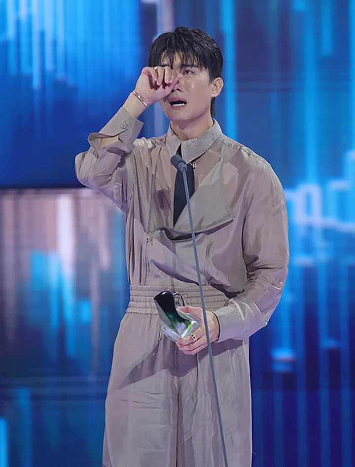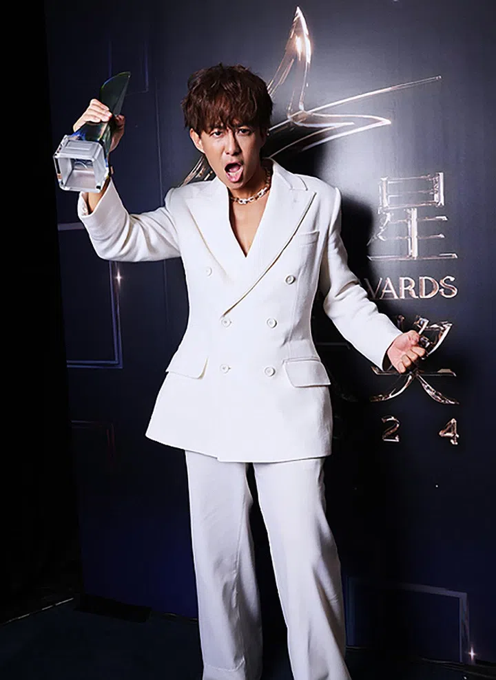 今年“升级”的他在台上说,自己不是平常的陈泂江而是缺乏睡眠,但是家庭满满、幸福满满又容光焕发的陈泂江。新手爸爸都会三句离不开小孩,这里得到充分验证。他也说自己特别喜欢2024年,因为喜事连连(希望听者有份),家里多了一个小龙宝,手上又多了一个宝(10大最受欢迎男艺人奖座)。