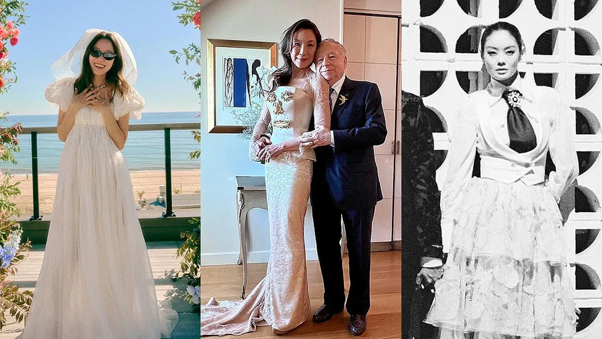杨紫琼也在社交媒体公布了自己的婚纱造型。婚纱出自由好友Daniel Roseberry担任创意总监的意大利品牌Schiaparelli,以珍珠、金属等构成独特“笑脸”造型设计绝对非典型,特别能展现杨紫琼勇于挑战传统和坚毅的个性。当然61的杨紫琼身材保养得当,因此马甲式搭配鱼尾长裙的婚纱廓形,她绝对胜任有余,穿出该有的韵味和优雅。