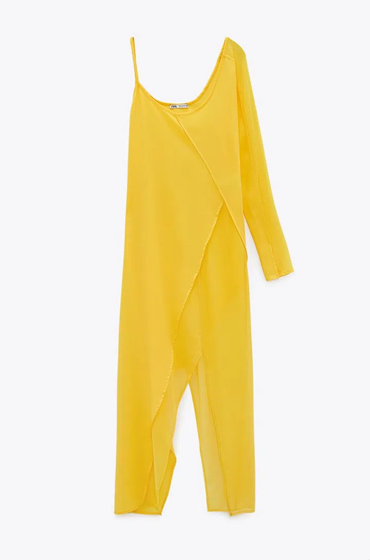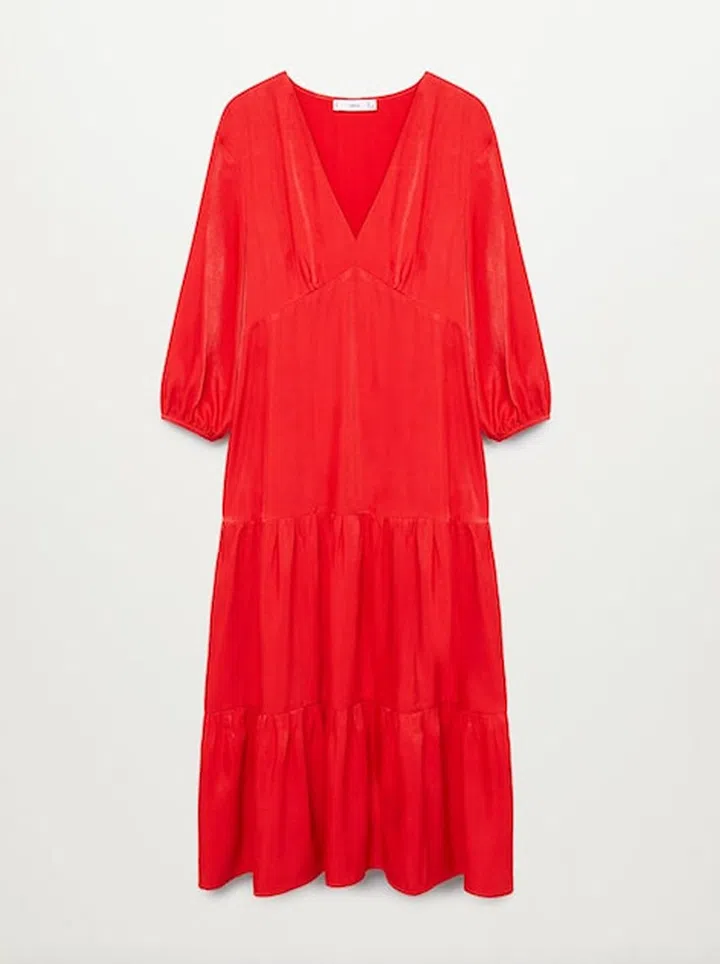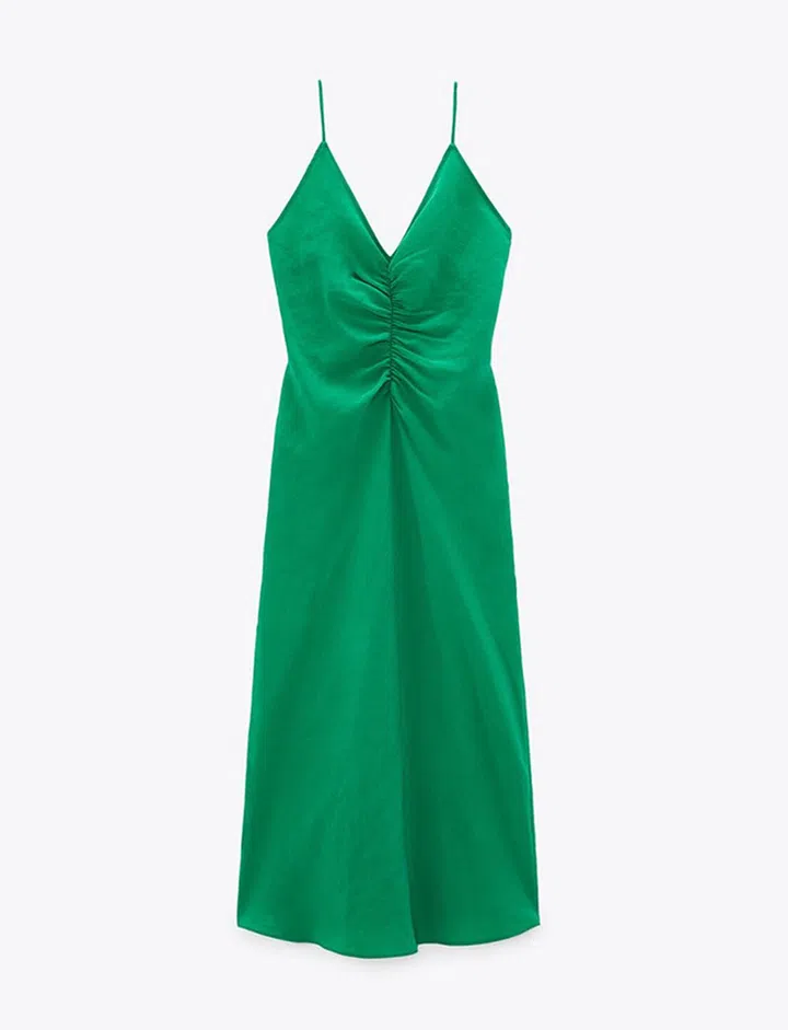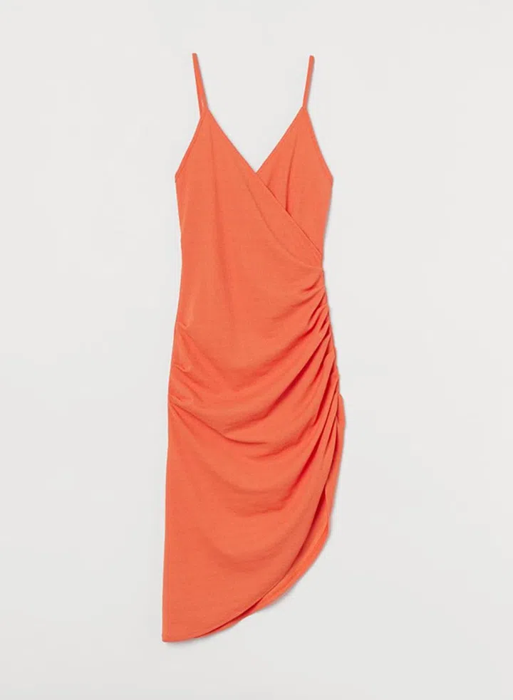 橙色是非常激发灵感的色彩,日常生活中,它能勾起人表达的欲望,对沟通大有裨益。如果觉得太鲜亮的橙色太过引人注目,那么这款橙色吊带裙用色相对柔和,而且其褶饰元素还非常修身。