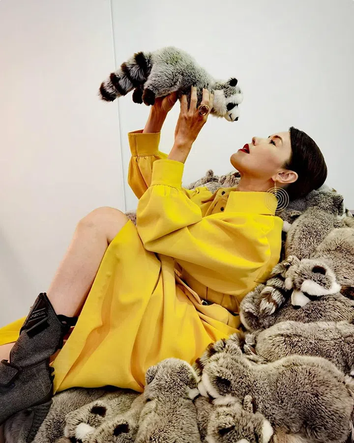 阿姐穿上知性的翡翠绿,将自然的绿色之美演绎得极其高贵。同时,绿色其实既不是暖色也不是冷色,而是一种能让人平静的色彩,让人变得从容不迫。