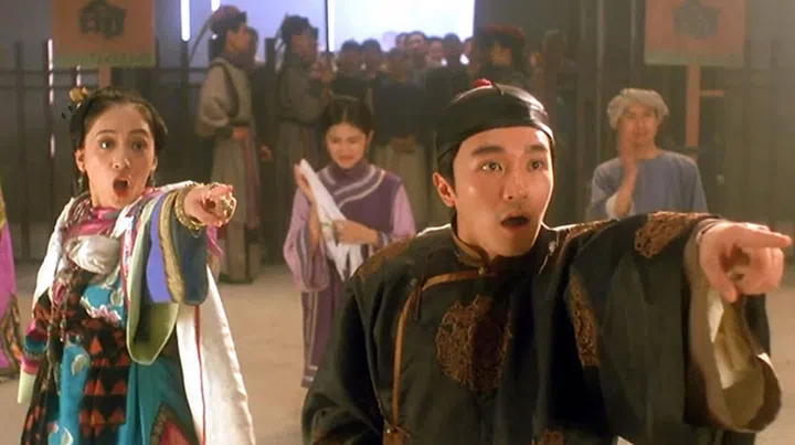 是梅艳芳第一次真正和周星驰合作的电影(之前他在她的《赌霸》中客串过),在戏中饰演一对“男有智谋女有武艺”的清朝夫妻。这虽非她第一次出演喜剧片,但和周星驰的默契堪称一绝(他更在某访谈中称她为“百年难得一见的演艺天才”),甚至可说是她众多喜剧中comedic timing拿捏得最精准的一次。看她在戏中演绎妻子角色,既能霸道又能小女人,既能强权又能(喜剧感十足地)跪地拉耳朵认错,完全融入角色中叫人看得拍案叫绝。