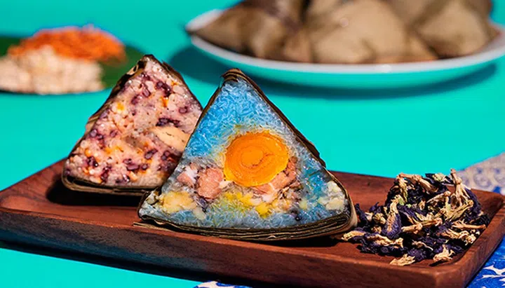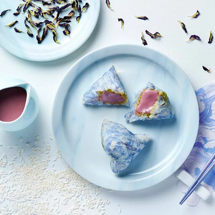 鸿桃轩的超上镜粽子再度回归,包裹在蝶豆米饭里的,是以北海道紫薯和红薯制成内馅,切开来色彩缤纷,美味又美观。此外,红紫薯甜而不腻,又足够饱腹,当正餐或饭后甜点都合理。