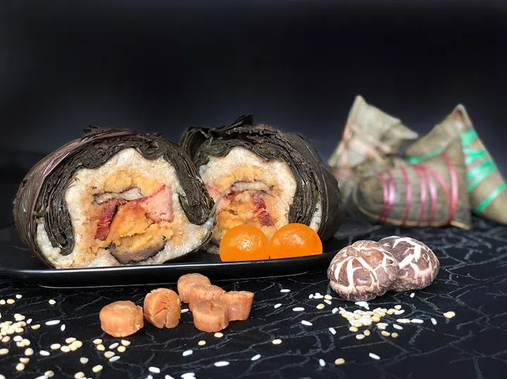 若在饮食上有些顾忌或是纯素主义者,则可选择这里的纯素粽子。这里的松露五谷粽采用了糙米、珍珠薏米及荞麦,内馅是Heura素鸡肉及冬虫夏草和桂花蜜,健康养生又美味!