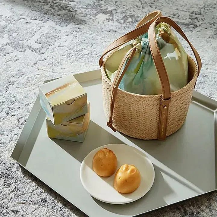 咖啡馆Sunday Folks今年推出的月饼礼盒,会让女孩们露出“心心眼”!首先是软萌小巧的兔子造型月饼,馅料采用日式白豆沙和柚子,装载月饼的是一个别致的竹编篮子,配有纯素皮革肩带,当作日常休闲手袋也绝对能胜任!每个竹篮内也设有可拆卸的尼龙防尘袋,装着6款独立包装的月饼。