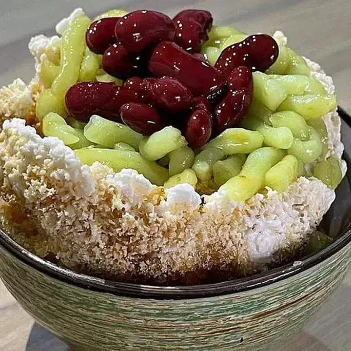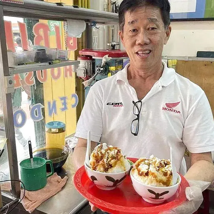 让小编至今仍魂萦梦牵的The Kappan Cendol(RM4.50)!老板娘兼主厨Leow Lay Wah靠自学成材,于2010创业开了这家小食店,2020年因为甜品供应商倒闭,她开始着手研发自家口味的煎蕊,经过多次失败后,才成功炮制出自家的特色煎蕊。嫩绿色的煎蕊条以新鲜班兰叶汁作为材料,制作煎蕊条的模具也是由老板娘的先生亲手自制!喜欢吃甜的话,可以要求添加更多椰糖汁,老板娘采用优质的椰糖加入新鲜班兰叶煮制而成。