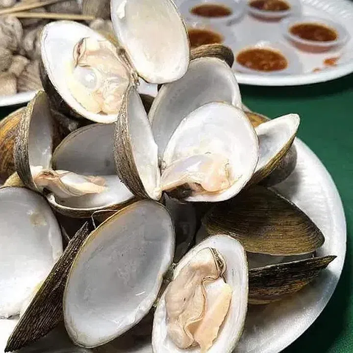 小编每回光顾,都会直冲两家熟悉的摊位,其中一家就是Fresh Oyster Corner Monterio。由一对夫妻档经营,主要售卖每日新鲜捕捞的贝类海鲜。老板夫妻俩每天下午都会搭船到附近岛屿,潜水捕捞野生的生蚝和贻贝,也会到红树林手工采摘鲜蛤“Lokan”,每日的菜单取决于他们当天的收获。