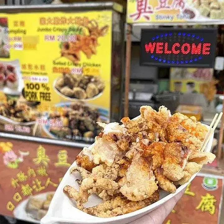 别被店名误导,Precious Eye Store可不是一家眼镜店哦!位于鸡场街的街巷角落,主打美味的酥炸鱿鱼,没有明显的招牌,一不留神可能就会错过它。推荐必吃这里的鱿鱼拼盘Jumbo Crispy Squid,一大盘只需RM20,换算成新元约S$6,超划算!沾上粉浆油炸的鱿鱼,让人停不了口,喜欢重口味的人也可以点一份撒上辣椒粉的辣味酥炸鱿鱼。