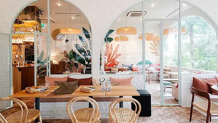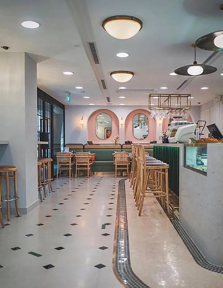 位于乌节路的Merci Marcel Orchard,装潢结合了法式风格和新加坡建筑设计特色,打造具有热带风情的法式咖啡馆。缤纷的壁画、拱形的玻璃门、藤制椅和舒服的沙发椅,整体空间柔和明亮。
