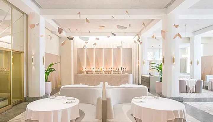 由法国葡萄酒分销商Aether Wines & Spirits开设的全新café,坐落在精品酒店SO Sofitel内,装潢设计散发优雅的法式情调,薄荷绿和粉红调色系、藤制家具和复古地砖,让人犹如走入巴黎街道上的小Bistro。