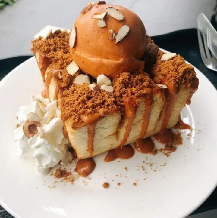 这家咖啡厅顾名思义,从饮品到甜品皆以芒果为核心食材。其中包括经典芒果饮料、芒果吐司、泰式奶茶、韩式刨冰、芒果糯米饭等。推荐喜欢尝鲜的你选择Thai Milk Toast,在厚片吐司上搭配泰式奶茶雪糕球、饼干碎、杏仁片及泰式奶茶酱,口感和口味都富具层次。