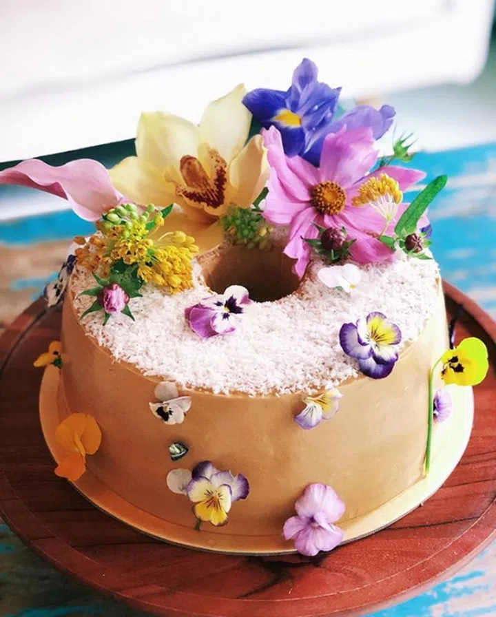 漂亮的蛋糕甜点,总是能让人心花怒放。创办人Say Lee是美术总监出身,对于美学自然有高要求,她烘培的蛋糕融入大量花卉元素,除了美味,也美感满分,简直是视觉味觉的双重享受!除了主打的戚风蛋糕,Say Lee也为客户定制独特的蛋糕款式,款款都精致得让人舍不得吃。IG上其中一款特别定制的戚风蛋糕,客户的生日和新加坡国庆日是同一天,她特别使用了本土特色的椰糖和榴莲作为材料,点缀朵朵漂亮花朵,下足心思。
