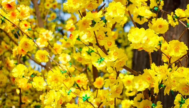 杏花象征着好运到来,是每逢春节热卖的“人气款”之一。标志性的黄色花瓣洋溢着明亮活泼的气息,散落满地后,地面一片金灿灿,就像聚财金币一样,也因此杏花还有另外一个非常厉害的昵称,就叫“满地黄金”,绝对能为家里带来喜气好兆头。