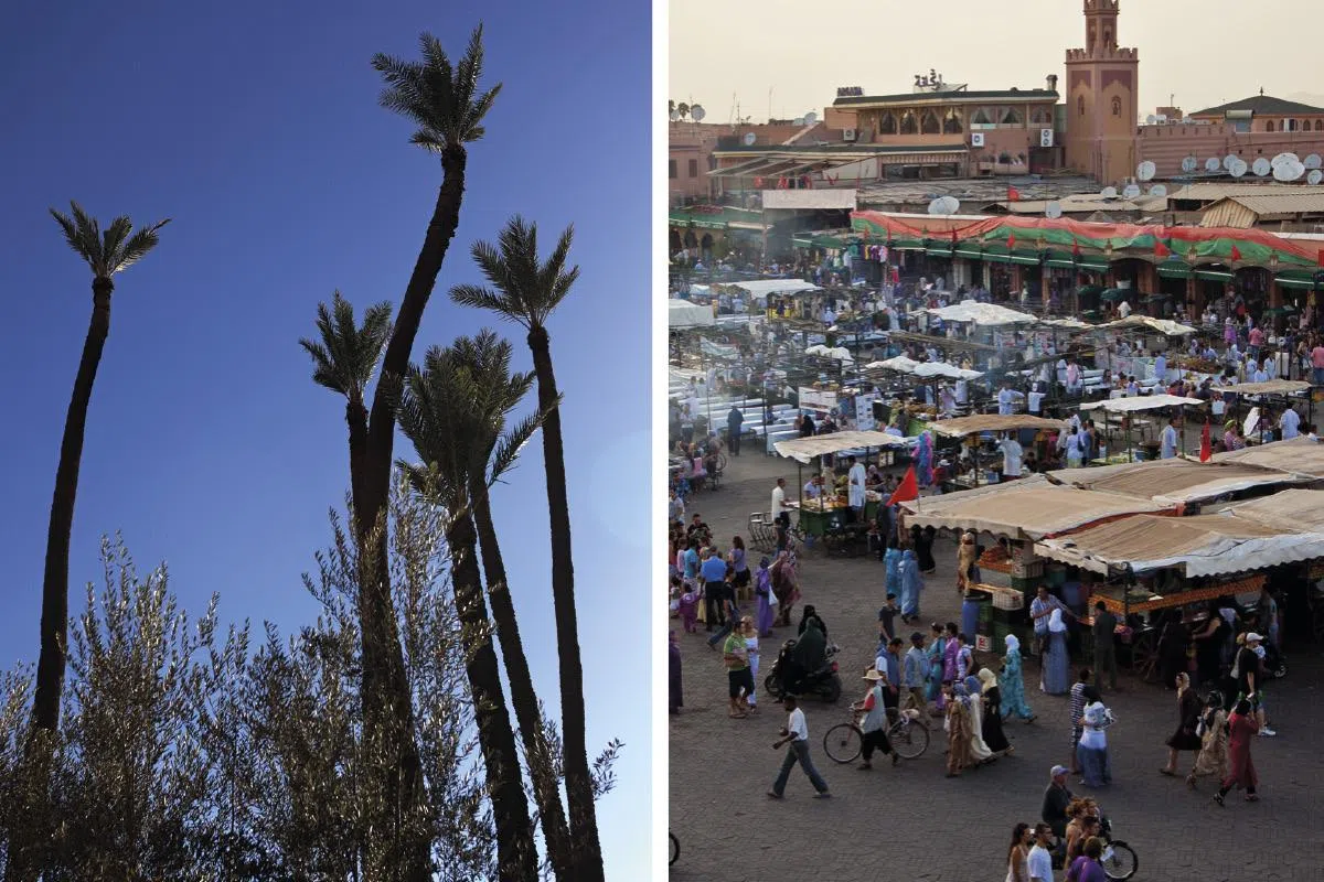 不夜城, 指的就是Marrakech的夜市。这个广场可谓是城市的核心, 被称为open-air theatre的它也是联合国文化遗产之一。白天你能在这里看到耍蛇和耍猴人表演, 夜幕降临时它摇身一变成为一个巨大食堂, 共有上百个小吃摊位。数不清的算命摊及街头表演能让你流连忘返。这里, 绝对能满足你想象中的异国情调幻想。