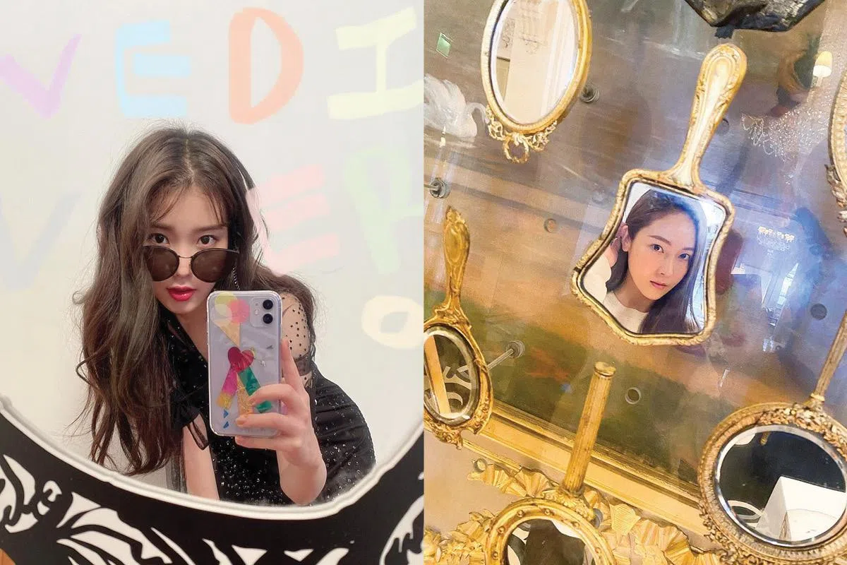 乍看就像将照片贴在镜框里,是最近很流行的mirror selfie拍法。就算只有一面镜子,也能让它整体入镜(最好提前布置背景),只露出一张脸的你,就会像画廊里的艺术人像作品,特别有意思。