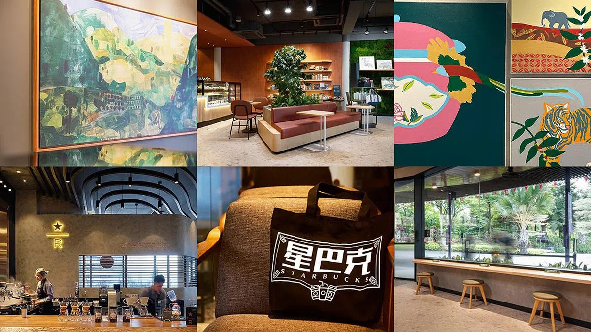 设计灵感启发自中国云南特色,这里的星巴克四处带有浓浓的“中华风气息”,甚至墙上的黑白绿叶图,都具有水墨画的既视感。