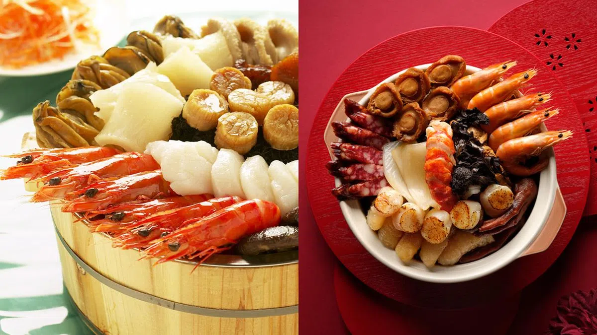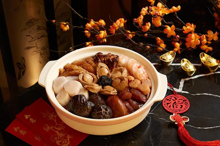 想要更奢华的盆菜,则可选择龙宫献宝盆菜(小份$328,大份$468)或富贵极品聚宝盆菜($1,288),前者有龙虾,后者有完整的三头鲍鱼、燕窝,及上等鱼肚等,配料更加顶级。有需要的你,可同时预订捞生、烧烤或新年小吃,1月22日下单则可获得高达20%的早鸟优惠。