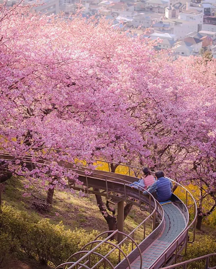 论最新潮且带有动感的赏樱地非西平畑公园莫属!游客们可以在顺着彩虹滑梯滑下,穿梭在开满樱花的树林里,樱花瓣随风飘落在你身边,同时还能被空气中的樱花香包围,绝对是沉浸式赏花,尤其适合与小朋友前来。
