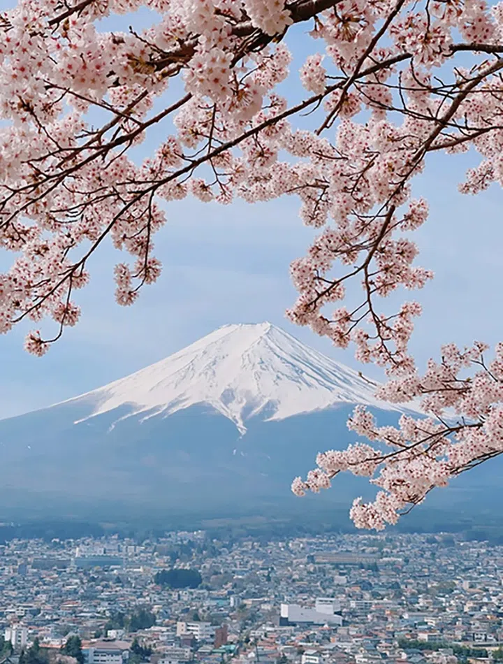 春天迎来绽放的樱花,富士山上却依旧白雪皑皑,这种反差感让富士山下成为了著名的赏樱花地点。在这里能一次看到最能代表日本的三大元素——富士山、樱花树和五重塔,看到自然风景和文化的结合,怎么看都不会腻。