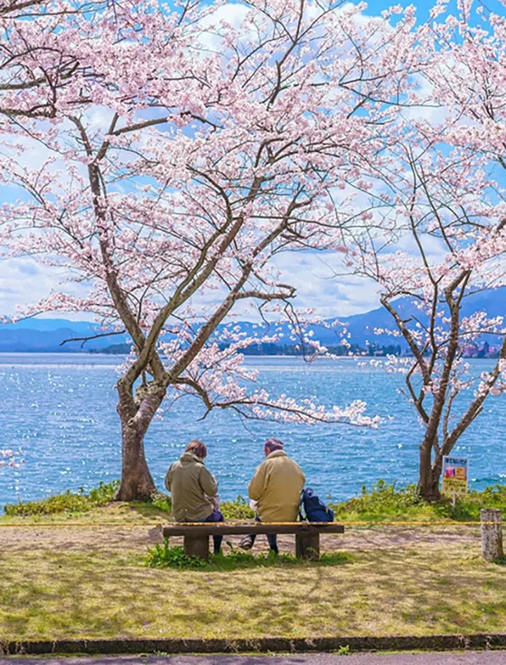 海津大崎位于日本滋贺县高岛市的琵琶湖畔,是小编最向往的赏樱地点。它虽不比前几个赏樱地点有趣,也相对小众,可它惬意的存在却被评为日本最佳赏樱地之一。800多棵樱花树环绕着湖水旁,甚至有多棵树龄超过80岁,更是远离市区,恬静又浪漫的地方。