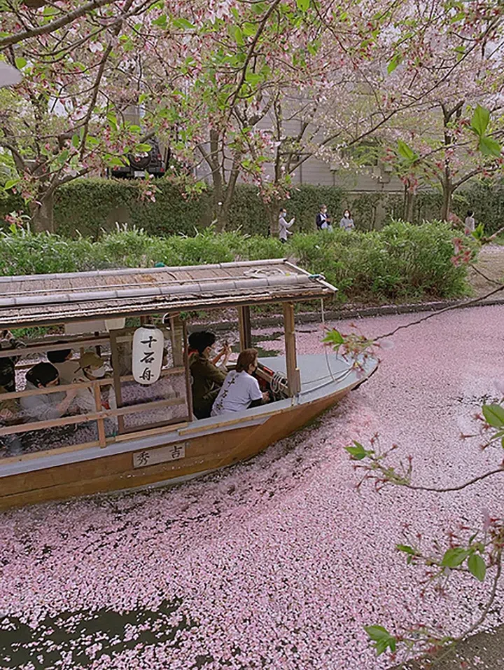 相比白樱花的寡淡,这里的粉樱花定能满足你的少女心。图片中的“樱花河”是樱花季尾端,樱花花瓣飘落累计的场景。乘坐小船缓缓游过,不仅能看到树枝上的樱花,更能畅游在铺满樱花的小河里,樱花香也因此更加浓郁。建议4月前来。