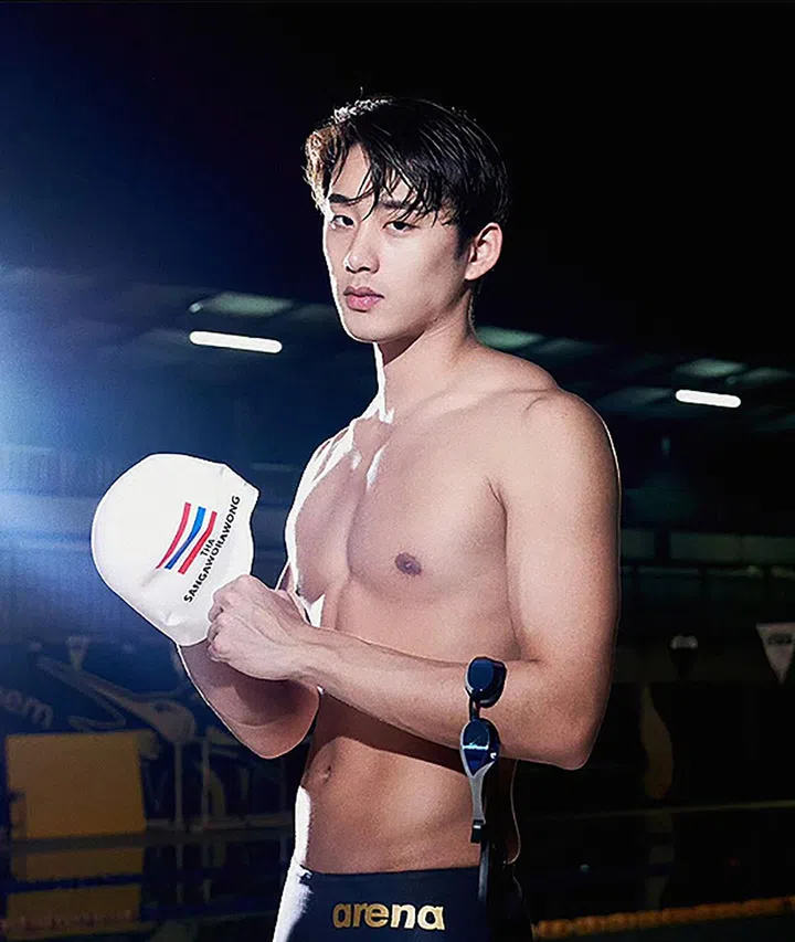货真价实的男明星来啦!身高180公分的Supha Sangaworawong(小名Est)是泰国顶尖游泳国手,也凭着出色的外形涉足娱乐圈。2020年他演出BL剧《不期而爱2》爆红,每回出赛泳池边都挤满大批粉丝,为他呐喊打气。22岁的Est堪称是人生胜利组,不仅是泰国50公尺与100公尺自由式全国纪录保持人,还是个妥妥的学霸,就读于泰国名校朱拉隆功大学,未来前途无量。