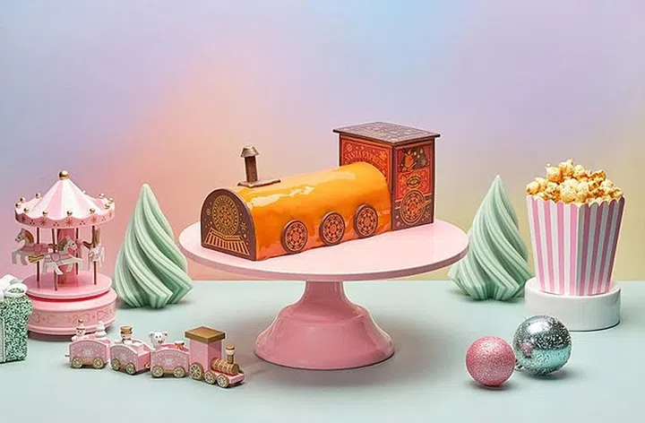 嘟嘟~ 火车即将出发!快“搭上”Marriott Tang Plaza Hotel打造的魔幻Caramel Popcorn with Apple Christmas Train($90/1kg)吧:里面藏有一层又一层的焦糖海绵蛋糕和香浓的苹果果冻,酸酸甜甜绝对开胃。