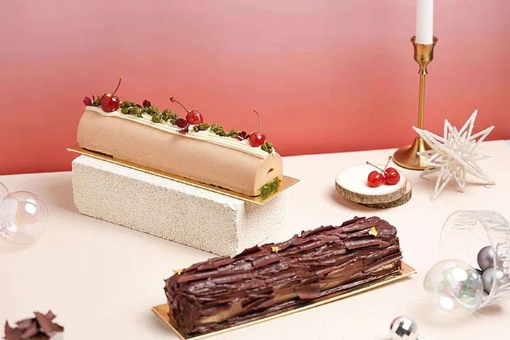 本地超高人气的蛋糕品牌Nesuto在今年圣诞推出了5款不同风格的糕点: 经典的Chocolate Yule Log($69)由黑巧克力打造,内陷里还藏有酥脆的胡桃脆片,让人忍不住一口接一口地吃下去;Chestnut & Vanilla Yule Log($69)灵感则来自品牌招牌的抹茶栗子蛋糕,以抹茶戚风为基底的蛋糕每口都带有浓浓的酒香。