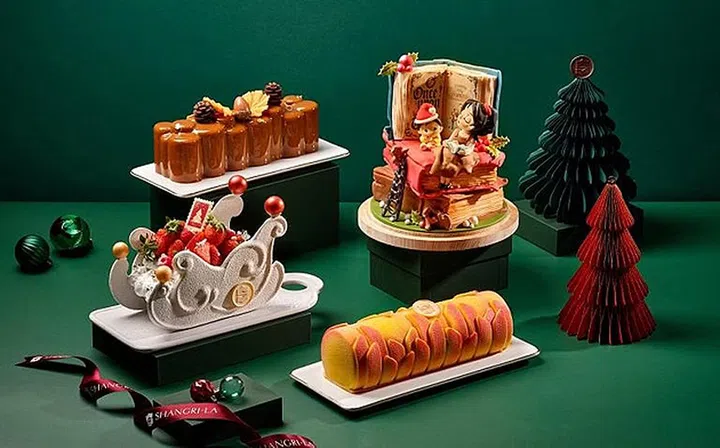 Shangri-La在今年圣诞节可是准备了一系列精致的佳节甜点,无论是送礼或自用都适合哦!由伯爵茶奶油+香橙果酱+费南雪打造的3D蛋糕Once Upon A Time ($128/1.5kg),童话图书的造型可是非常梦幻。另外还有圣诞老人的雪橇($128/1.5kg),松软的戚风蛋糕配上多汁的草莓、酸甜的柚子酱、香草奶油等,可爱又好吃!