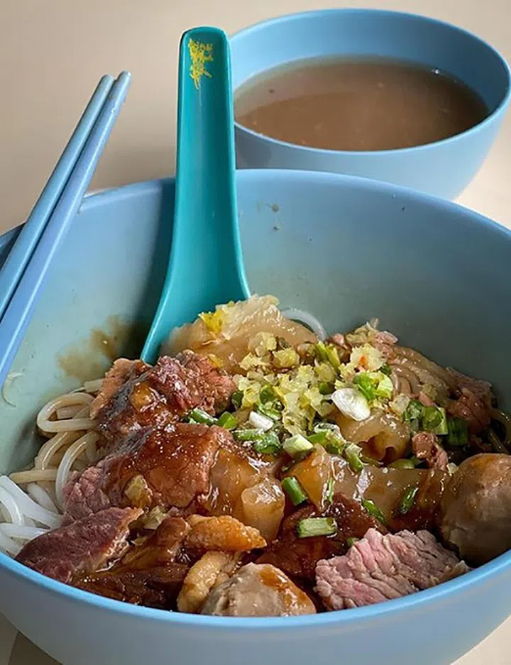 立兴潮州鱼圆面(Lixin Teochew Fishball Noodles)在全岛共有11家分店,其中一家就位于大巴窑Kim Keat Palm Market & Food Centre熟食中心,原店创办人Lim Lee Seng和太太至今还在这家食摊售卖招牌的鱼圆面哦!创立于1968年,摊主从小推车开始创业之路,鱼丸都是以黄尾鱼肉手工精心制作,弹牙味鲜,配搭加了酥脆猪油渣的干捞面,更叫人回味。