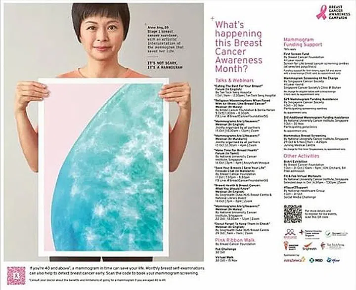 新加坡乳腺癌基金会(Breast Cancer Foundation)推行的全年津贴计划,针对首次做检查、年龄超过50岁的新加坡女性公民(持有蓝色或橙色CHAS卡),可到综合诊疗所做检查。