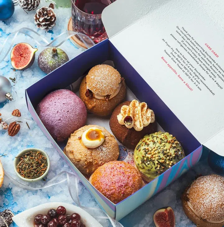 Sourbombe会推翻你对传统甜甜圈的认知!这间网红甜品店是由2018年MaterChef Singapore冠军得主Genevieve Lee所创,招牌甜甜圈将酸种欧包(sourdough)和传统意大利甜甜圈(bomboloni)相结合,再填充满满的内陷,让你体验一口爆浆。时隔4年,Sourbombe今年推出的圣诞糕点仍旧让你心动、想吃!Nutcraquer礼盒里有Santa's milk & cookies等种不同口味的甜甜圈,聚会与朋友们分享,顺便分享卡路里呀!