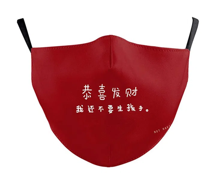 已婚但仍不准备要小孩?这个印上“恭喜发财,我还不要生孩子”字样的口罩,就能礼貌又不失幽默地帮你回绝“三姑六婆”们的提问。