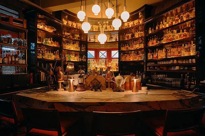 The House Bar 坐落于Conrad Singapore Orchard内,是一处低调奢华的精品酒廊,为追求细腻与品质的人打造完美的放松空间。这家酒吧的核心是一面精致的切割设计墙,上面展示了丰富的清酒系列,搭配璀璨的吊灯,营造出优雅又私密的氛围。无论是与闺蜜的亲密聚会,还是享受独处的时光,这里都能满足你的需求。