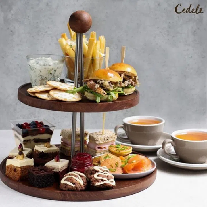 Cedele在全日天式餐厅推出的下午茶套餐,两层餐架上有各种甜点咸食,包括炸软壳蟹、烤牛肉馅饼、松露薯条、司康饼和Cedele经典特色蛋糕。想品尝大人系的酒味甜点,别错过Dark Jamaican Rum Tiramisu兰姆酒提拉米苏。